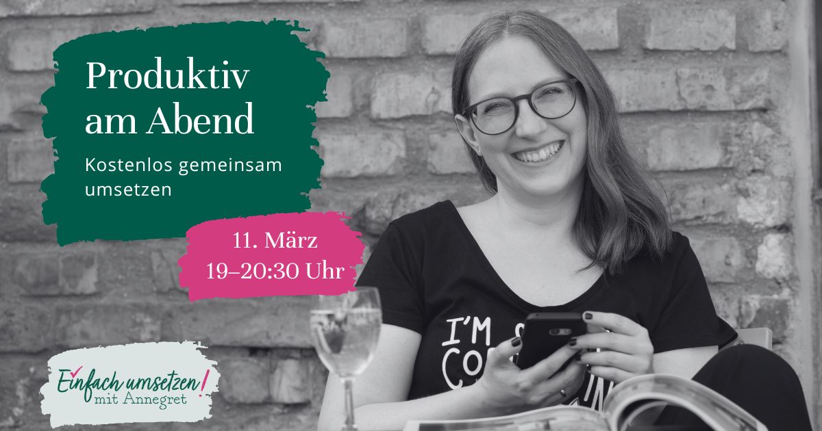 Produktiv am Abend – am Mittwoch, 11. März, 19–20:30 Uhr
