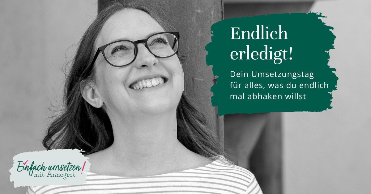 Der Endlich-erledigt-Tag am Samstag – projektoffener, flexibler und auch für private Vorhaben! Ob Keller ausmisten, Schrank sortieren oder doch Business-Aufgaben: Du entscheidest, woran du arbeitest.